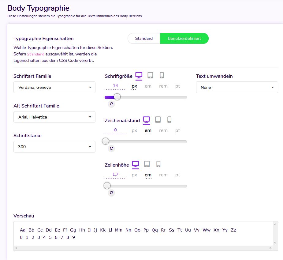 Play around with the font family, size, transformation, style, decoration, line height and letter spacing to give users a different look on your website.
